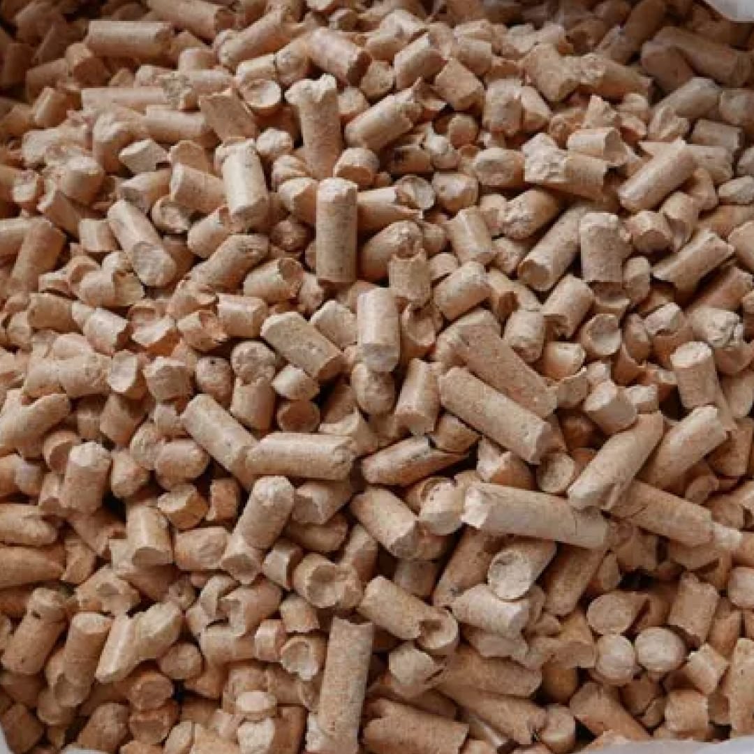 We use pine wood pellets, sourced from the high quality shavings of wood as it processed. We source our shavings from later in the processing chain, once the bark has already been removed.